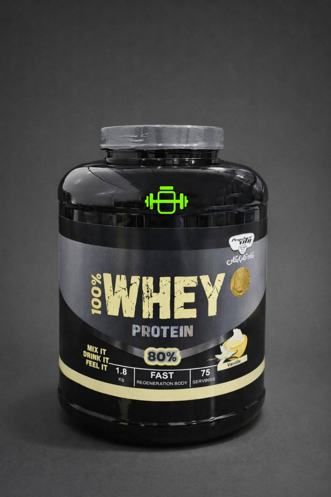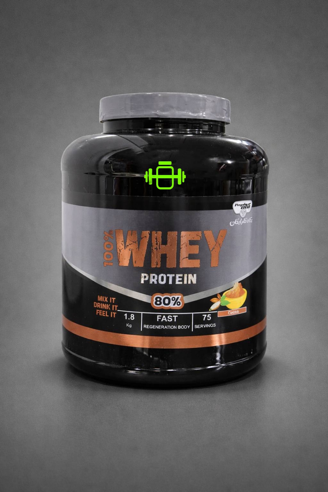 پروتئین وی ۸۰% پگاه در قوطی ۱۸۰۰ گرمی با درب حفاظتی و پیمانه استاندارد عرضه میشود.
